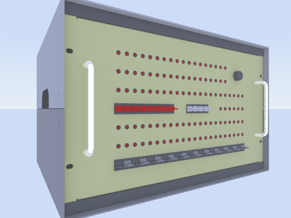 I didn't get a chance to make a drilling template for the card cage. Perhaps tomorrow. 4/23/2005Lots of progress in the garage (filled the van with garbage and took it to the dump). Lots of progress in the back yard (repaired long-broken sprinkler system). Lots of progress cleaning the house (and doing laundry). Little progress on Magic-1. I did sneak a few minutes and built up a couple of small items. First, I put together a couple of 30 Ohm power resisters with a standard PC power socket. I'll use this to give me the 800 ma 12 volt minimum current required by my switching power supply. Second, I drilled a few of the holes I needed in the perf board and mounted the brackets, both IDE drives and the switches. I still have to do a bit of wiring (mostly bringing the switches to the 10-pin ribbon cable socket). The bracket side will be mounted flush against the lower back panel. I'll cut a slot to allow insertion of a compact flash card, and will also put a pencil-sized hole at the position of the red push button. That's RESET, and it will be recessed to avoid accidents. I hope to put together a set of hole templates tomorrow (back panel, and mounting holes for the power resistors and card cage on the bottom of the enclosure). If I can get those, I'll stop by a friend's house after work tomorrow and use his drill press. 4/22/2005Picked up the other main acrylic piece from Tap Plastics today. It's the new top for the card cage, with the center cut out to allow me to swap microcode EPROMs without removing the control card. I think it looks really nice: I only had a few minutes to play between chores, but I did manage to cut a new platform for the IDE drives out of perfboard. The first was a bit crowded. Also, I have two IDE <-> compact flash adapters. The first one I tried took up less space, but I realized that the CF card wouldn't stick out of the slot I'm going to cut in the lower back cover very far at all (and would make it really difficult to pull the card out). The other adapter will allow me to have up to a half-inch or so of the card sticking out, but it takes up more floor space. Anyway, I've decided to use the latter (with about a 1/4 inch of the card sticking out). Also, since I've got more place to play with, I'm experimenting with mounting the HP Kittyhawk drive flat rather than on its side. With luck, I'll find the time to drill mounting holes in the perfboard tomorrow and do a mock-up. Once that's done, I'll use the nibbler to cut the CF slot. The slot will be the anchor for the rest of the mounting holes (and the access hole for the reset switch). 4/21/2005It's looking good - really good. The front panel artwork came back from the laminator today, along with the first of the acrylic pieces. I used 5 mil glossy lamination (both sides, done at Kinko's). It only took a hour or so with my 7 mm circle hole punch and .5" square Xacto blade to cut out all of the holes. Made a nice mess, but worked really well. The circle punch was especially useful - it would have been a nightmare to try to cut all of those circles with a blade. The only mishap of the night came when I drilled the tiny hole near the register select switch. The hole is for the tab of a slotted washer that keeps the rotary switch from slipping with use. I'd taken great care in precisely locating the hole (7.5 degrees offset from 12-noon position). Sadly, I thought I could drill it out using my hand-held electric drill. Naturally, the drill bit walked and the hole ended up in the wrong spot. I have to get myself a drill press one of these days. Anyway, I managed to correct my error with a bit of work with a tiny file. I installed the switch for testing and it is aligned just right. Next up was attaching the artwork to the front panel. I smeared the back side (mostly just the edges) of the artwork with tacky glue. I then slapped it on and put in the LED clips to align everything and hold it down while it dries. In truth, I probably could have gotten away without glue - the lamination makes it pretty stiff and all of the LEDs and switches will hold things down. Here's a picture of the shield. It's actually clear acrylic, but I'm keeping the protective covers as long as I can. Here's how it is going to work: Unfortunately, it looks like I'm going to have a very busy weekend. My wife is throwing a party of sorts next Friday, which means lots of house cleaning and the long list of household repairs I've been ignoring for months. If I do find some time, my focus will be on the platform that will hold the IDE drives and clock control switches. After that, it will be time to drill the card cage mounting holes. After tonight's experience, I'll definitely be borrowing a drill press to do those. 4/20/2005Another very cool addition to Magic-1 arrived today from Alistair Roe - a 7420 with a date code indicating it was manufactured in week 24 of 1969. I'll be adding this device when I reassemble Magic-1 this weekend. I very much like the idea of Magic-1 using a 36-year-old logic element. As Alistair pointed out, this chip was manufactured a month before the Apollo 11 moon landing and about 4 months before the first ever ARPANET message was sent. Soon, it will be playing a key role in Magic-1's processing abilities. Here's a picture: Things are progressing nicely on the front panel and enclosure front. I printed out the final front panel art this morning and sent it off to the copy shop to be laminated. Here's what it will look like: I'm also a few custom Plexiglas parts made to help piece things together. With luck, I'll start wiring up switches and LEDs this weekend. 4/17/2005There wasn't enough room on the front panel for all of the switches that Magic-1 supports. Left off were the clock source select (which chooses between 2 crystals, 1 slow variable-speed clock and a single-step clock), the reset button and a switch that decides whether the 1st 16K bytes of physical address space are mapped to the boot ROM or just RAM. My first 