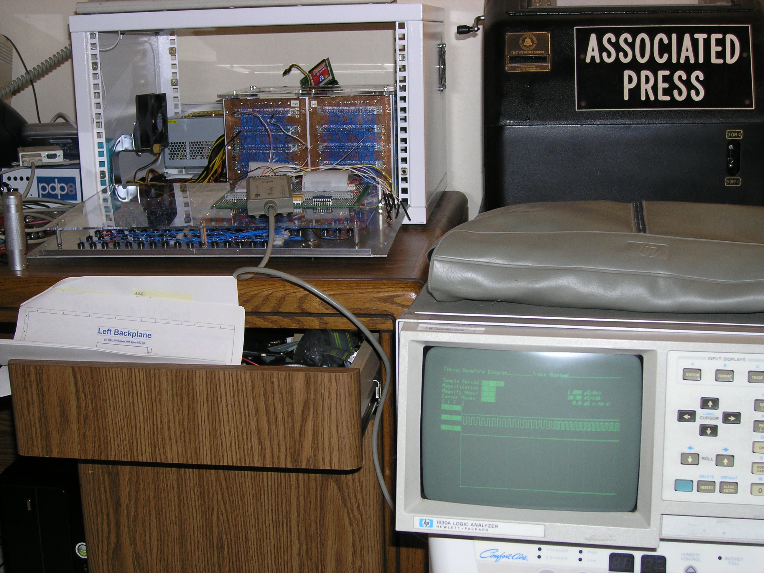 2/17/2010Gave a talk on Magic-1 at the San Francisco ACM chapter meeting. Fun stuff - it was held on the old Oak Room at HP (the same room I got my HP new employee orientation in 25 years ago). Lots of interested folks and good questions. 6/4/2009Had a great time at the 2009 Maker Faire - spent two full days on my feet talking continually. My table was next to Steve Chamberlin's great BMOW project, and I was happy to finally meet Steve and check out BMOW. Here's a picture of my setup just before the show opened: This was the fourth time I've displayed Magic-1 at a public show, and I continue to be surprised at the number of people who have heard of the project and understand what it's all about. You can also see one of my Nixie tube clocks and a dekatron spinner on the table. Those drew considerable interest from the crowd as well. All-in-all, a fun weekend capped off with a Maker Faire Editor's Choice award. I was too busy to take many pictures, but the folks from IDG News Service (part of the PC World magazine organization) did a video interview and published it on the web: I haven't made any significant changes to Magic-1 in quite a while. It's pretty much complete now. About the only thing left for me to do is release all of the sofware I've written for it as open source. I just need to find some time to review all of the other open source code I've incorporated into the project to make sure I'm respecting their licenses. After that, I'll push everything into the open - including the build environment in case anyone wants to compile and run their own programs on Magic-1. 2/1/2009WooHoo! - Found and fixed a long-standing bug today. About two months ago I was making some minor changes to the kernel makefile and discovered that if I rearranged the link order the kernel would hang during boot-up. I suspected a linker bug in bss fixups, but after lots of debugging convinced myself that the linker was ok. Kernel hangs can be very difficult to debug - especially during the boot process, so I simply reverted to the older makefile and hoped I would eventually run into a more clear-cut (and easier to debug) failure. That failure showed up after a minor change Friday night. Instead of hanging, the kernel aborted with an unexpected trap - and I could consistently reproduce it. It took most of the weekend to narrow it down, but I finally tracked the problem down to a mistake I made about 2 years ago when allocating kernel task stacks. One of the tasks stacks overlapped a temp disk buffer that was only used during boot-up. That's why there was never a problem once the system was fully booted up. 12/28/2008Although I've been quite busy with the new job (I'm on Google's Android team - working on the Dalvik VM), I continue to fiddle with Magic-1 from time to time. Over the Christmas break I did quite a bit - mostly performance tuning and recovering from a failed hard drive (one of my 1994 20MB HP Kittyhawk drives). A few years ago I got a handful of Kittyhawks, but I've been losing them at the rate of one every six months or so. For that reason, I've decided to just use a Compact Flash drive for day-to-day operations. On the performance tuning front I added some features to the kernel to profile system tasks as well as user programs. The good news, I guess, is that there isn't much more performance to get without replacing LCC with an optimizing compiler. I was able to get some noticable speedups by rewriting 16x16 multiplication and 32-bit shifts (which mostly affected floating point speed). I also hand-coded some assembly replacements for key portions of the IDE hard drive driver. I've been toying with the idea of writing a Magic-1 target for the LLVM optimizing compiler framework. Done properly, that could give a pretty dramatic speedup - and I've been wanting an excuse to play with LLVM. Perhaps later. Today I decided to clean up one of the grungier bits of Magic-1: the boot mechanism. Currently, to boot Minix I have to first boot into my original OS/Monitor, and then load the Minix kernel, servers and init processes. The ugly part of this is that to try out a new kernel or server component, I have to first transfer it to the old OS/Monitor filesystem. I need something like Linux's GRUB or Lilo, and a prerequisite for that is stripped-down, minimal standalone code that understands my modified version of the Minix FS. There is existing code for Minix which is close, but I also wanted it to work in a cross-development environment, so the code has to understand big/little endian issues. Also, my file system uses 2K blocks instead of Minix's 1K blocks. Anyway, the code seems to work. Next up - a simple boot command interpreter/shell. I'm back to work tommorow, but perhaps I can get this done over the New Year's break. It will be nice to have a flexible boot loader. 9/21/2008A little more than 24 years ago, I began my computer programming career in Hewlett-Packard's compiler lab in Cupertino, CA. I started off doing code generation for the then-new PA-RISC architecture, and over the years was lucky enough to get to dabble in Millicode (run-time support libraries written in assembly code), debuggers, dynamic translation systems, mechanisms to optimize programs while they ran and even participate in design of IA64 (Itanium). I left HP during the height of the dot-com craze to join Transmeta (which based it's x86-compatible microprocessor on dynamic translation). I returned to HP in 2002, ending up in HP Labs in Palo Alto (with my coolest title ever: Senior Research Scientist). My last day at HP was Friday, and I leave with lots of great memories. On Monday, I start at Google. I don't know the exact details of what I'll be doing there, but I can only assume that the bright folks there have realized that the future of massively powerful data centers belongs to wire-wrapped TTL. I'll be sure to bring my wire-wrap gun. 7/8/2008Heard from Aidil Jazmi, who built the fantastic clone of Magic-1 while a student 